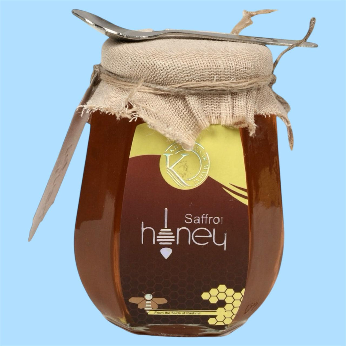 Indulge in nature’s most luxurious gift – Khan Kesar Mahal Saffron Honey, made during the rare saffron bloom in Pampore, Kashmir, between mid-October to mid-November. During this short season, beehives are placed right in the saffron fields, where bees collect nectar directly from saffron flowers, infusing the honey with the flower’s natural essence.